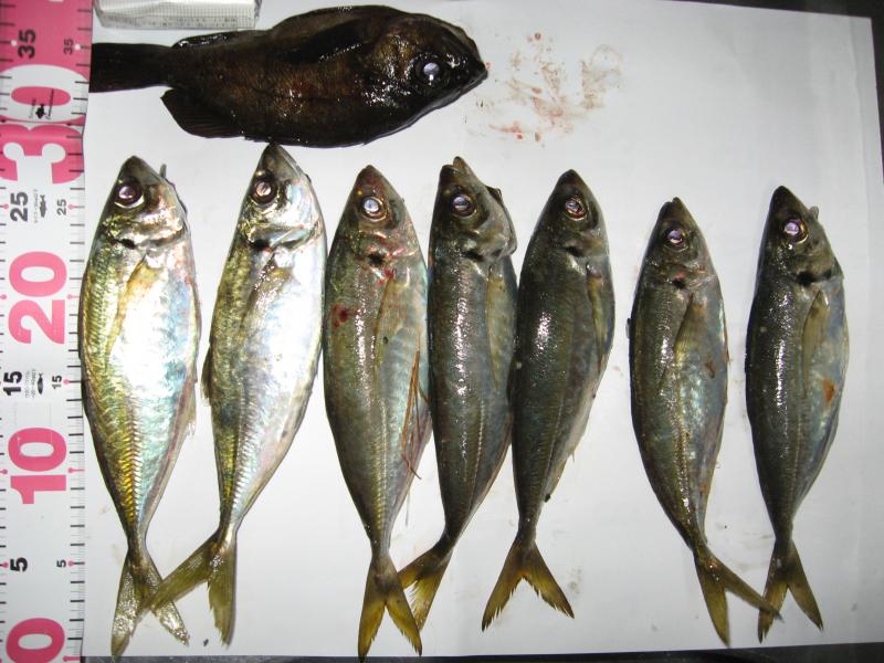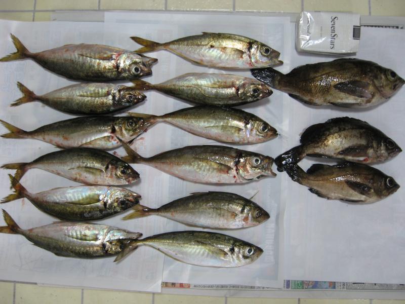 アジは16~20センチまでを12匹・ちびセイゴ多数