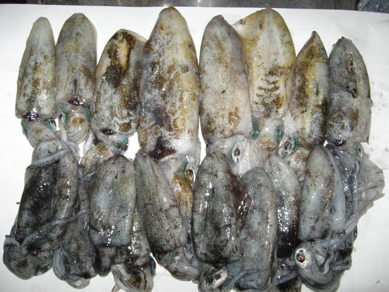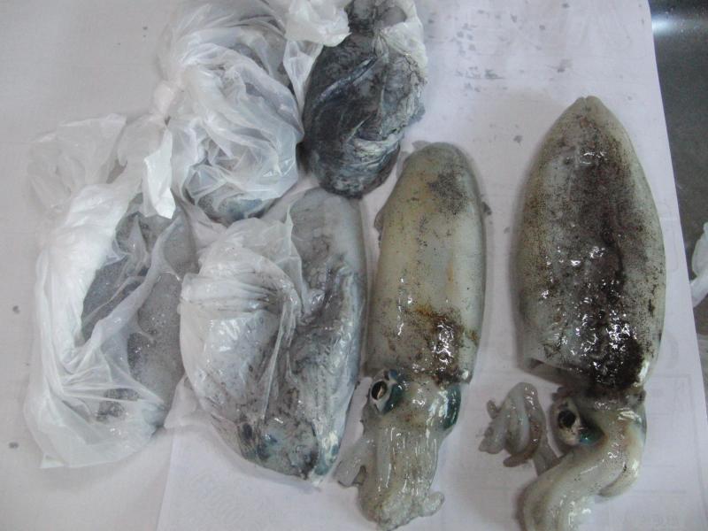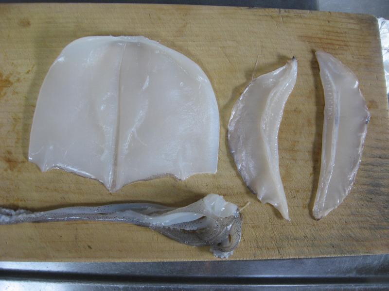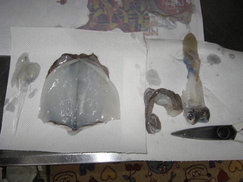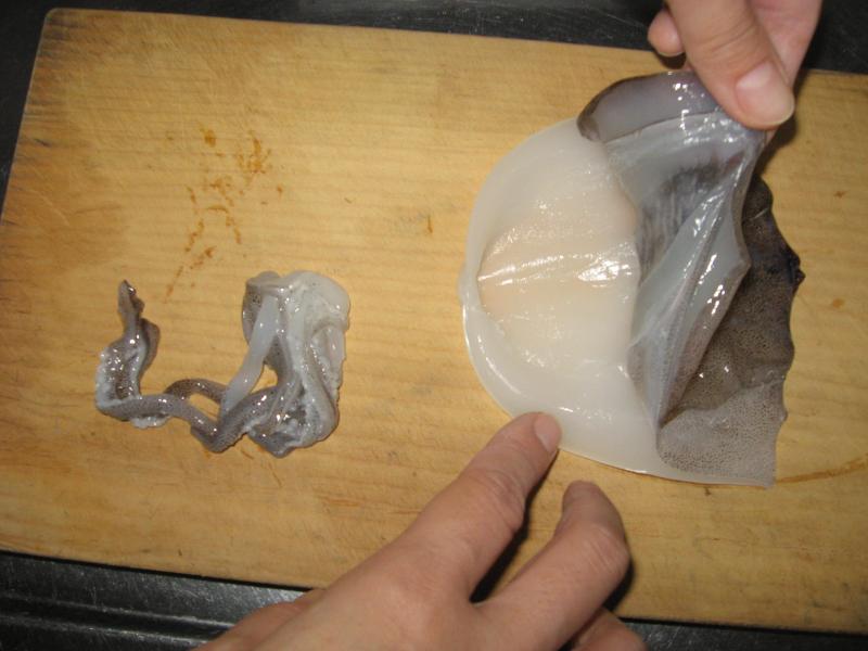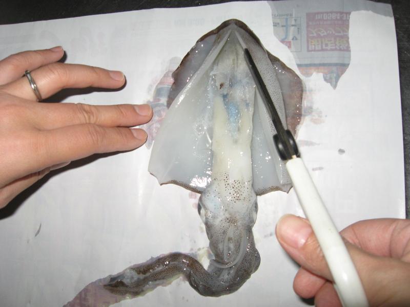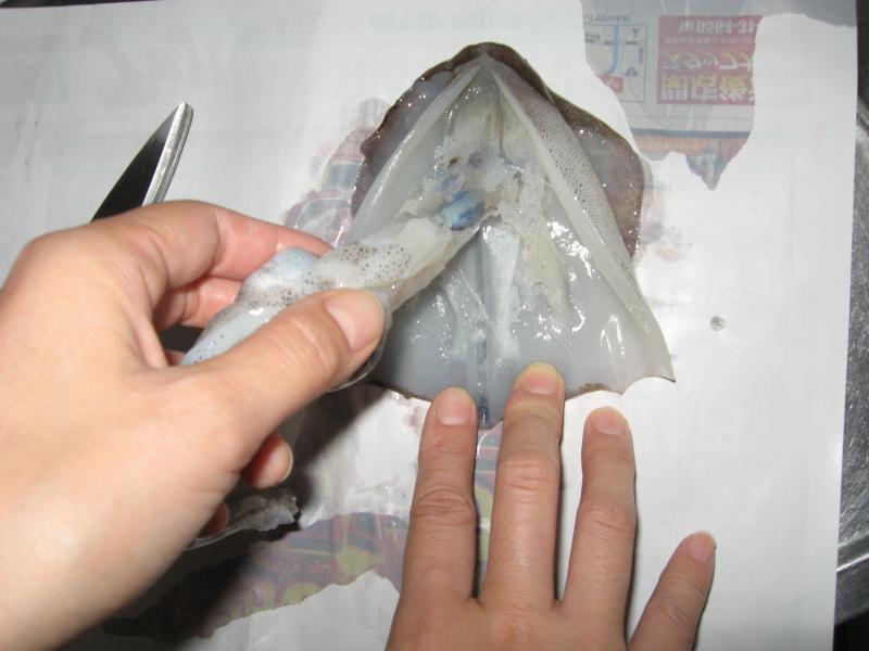 この時イカ墨がお腹の中に残っていたら足と内臓を取り除く前に