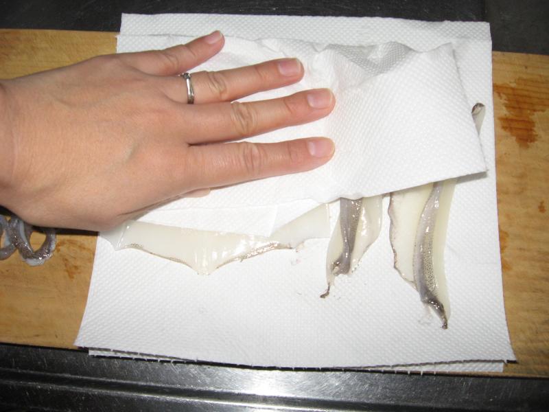 一度冷凍したイカを使います・・・冷凍しないと生臭いような・・・emoji