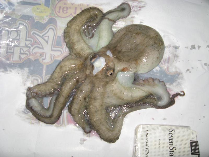 目の下あたりで切りはなし足の方に付いてる口を取る・・・↓