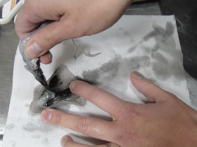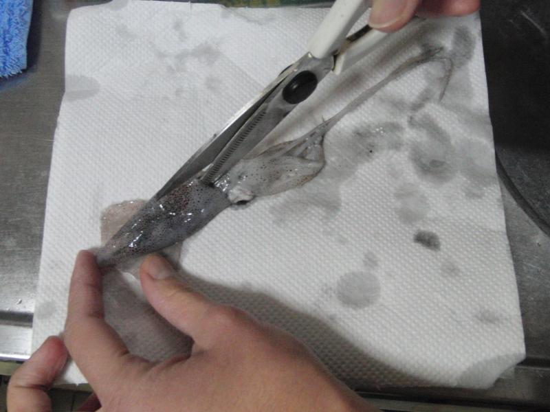 ハサミでお腹から開いて・・・↓