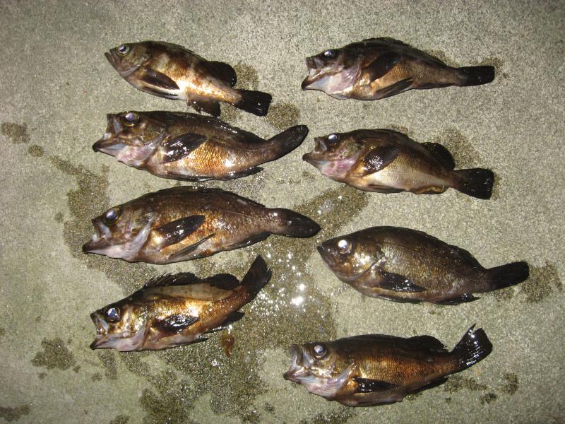 メバルは産卵前で子持ちが多く釣ってはリリースと
