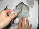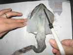お腹の柔らかい方からハサミで・・・↓